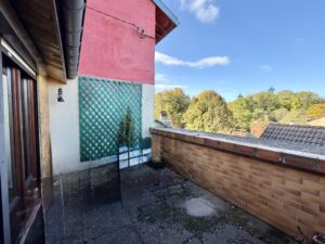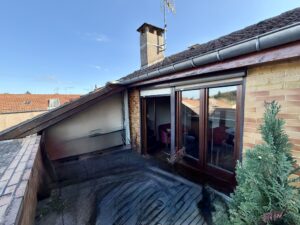 Cette maison mitoyenne d’un côté, ne possède pas de terrain mais une belle petite terrasse au second étage offrant une agréable vue dégagée.