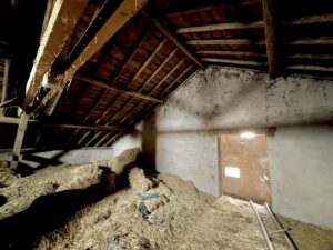 - A l’étage : trois chambres, greniers