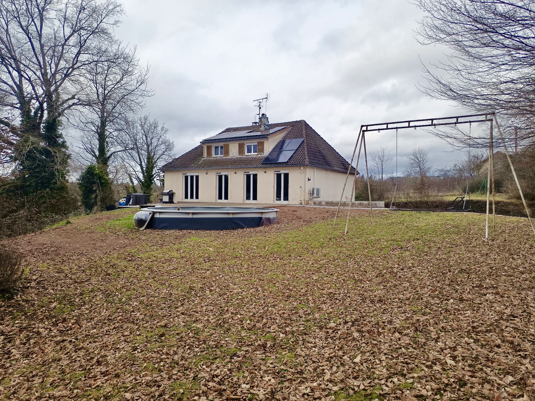 Chauffage par pompe à chaleur réversible (2019), et poêle à granulés, chauffe-eau thermodynamique, panneaux photovoltaïques en consommation et revente du surplus.