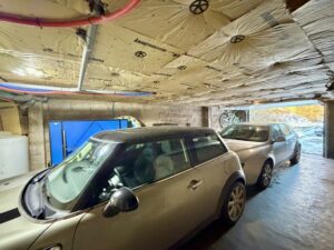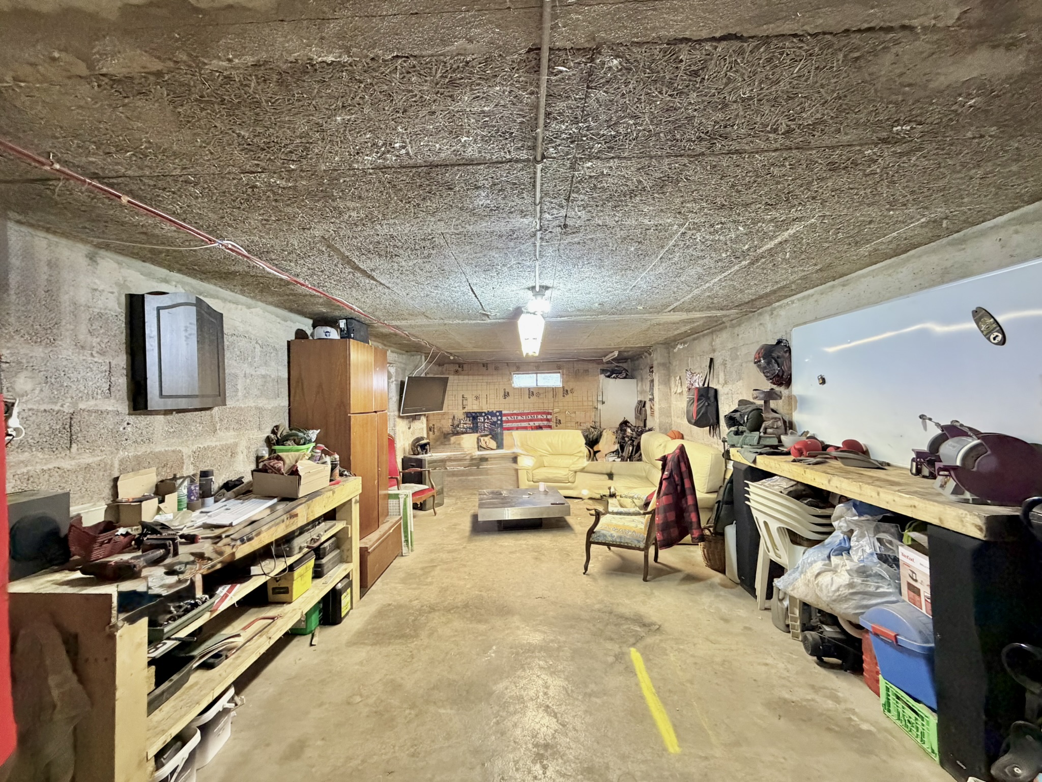 Sous-sol complet avec buanderie, grand atelier, et garage deux véhicules.