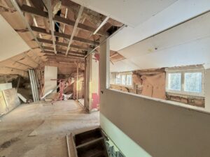 - A l’étage : un plateau à aménager pouvant accueillir une grande suite parentale,