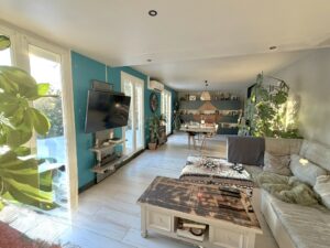 - Au rez-de-chaussée : magnifique salon-séjour d’environ 40m2 exposé sud avec accès direct sur la terrasse, belle cuisine équipée, trois chambres, salle de bain (baignoire et douche), et WC,