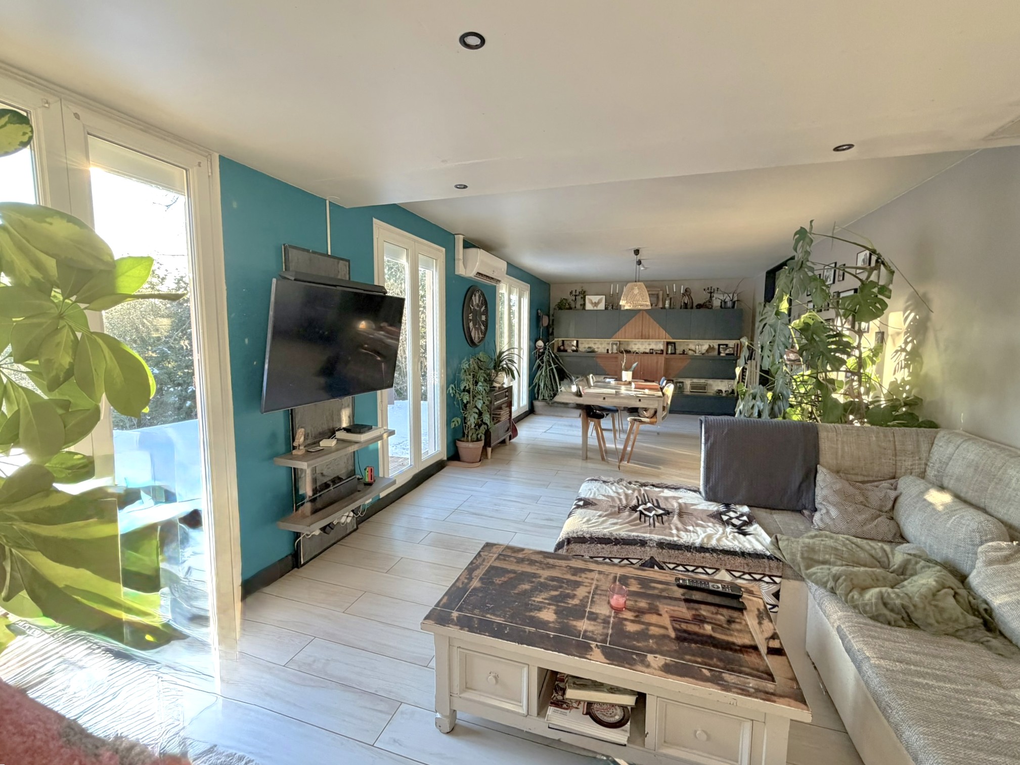 Cette maison rénovée, située sur les hauteurs, sans vis-à vis, comprend :